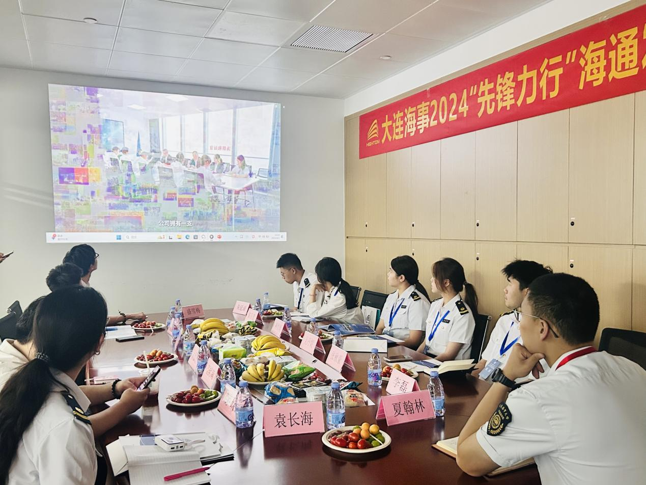 2024年8月1日大連海事大學外語學院指導員夏翰林老師帶領(lǐng)暑期社會實踐團隊8名學生來到海通發(fā)展參與交流調(diào)研。外貿(mào)航運中心總經(jīng)理袁長海、人資行政中心副總經(jīng)理李磊代表公司出席。