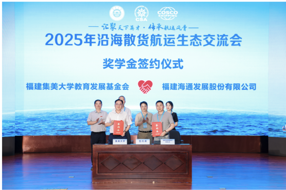會上,海通發(fā)展與集美大學(xué)共同簽署了“海通獎學(xué)金”捐贈協(xié)議書,用于支持集美大學(xué)航運(yùn)教育發(fā)展事業(yè),獎學(xué)金設(shè)立期限為5年。