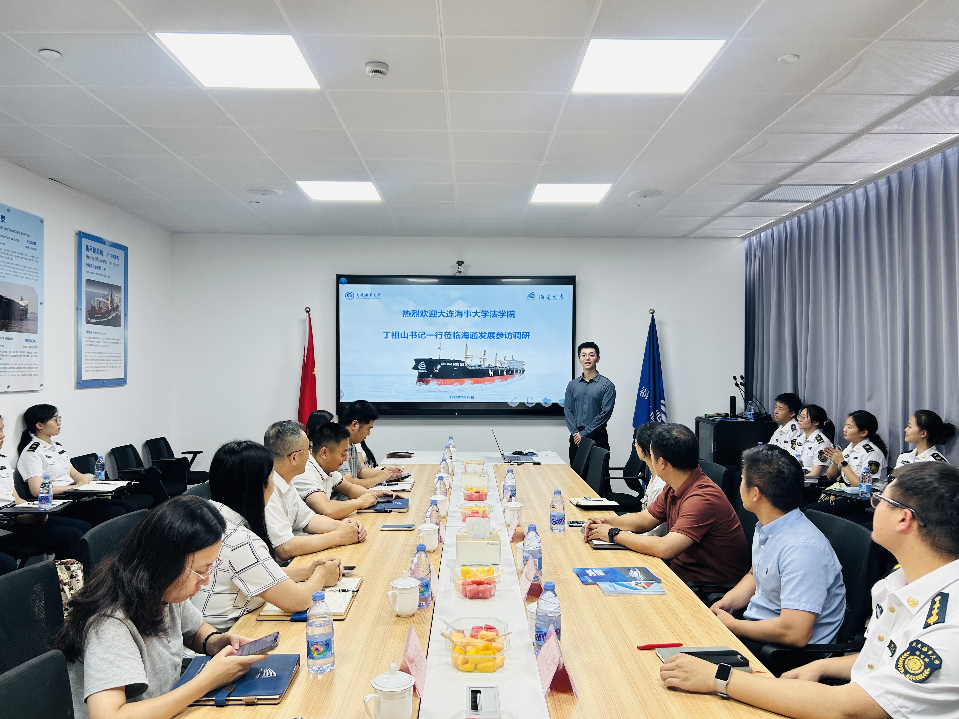 2025年7月24日,大連海事大學(xué)法學(xué)院黨委副書記丁祖山帶領(lǐng)21名師生赴海通發(fā)展進(jìn)行暑期就業(yè)實(shí)踐考察。公司高層管理人員及多位海大校友出席活動(dòng),雙方就航運(yùn)業(yè)發(fā)展趨勢與人才培養(yǎng)等議題展開深入交流。