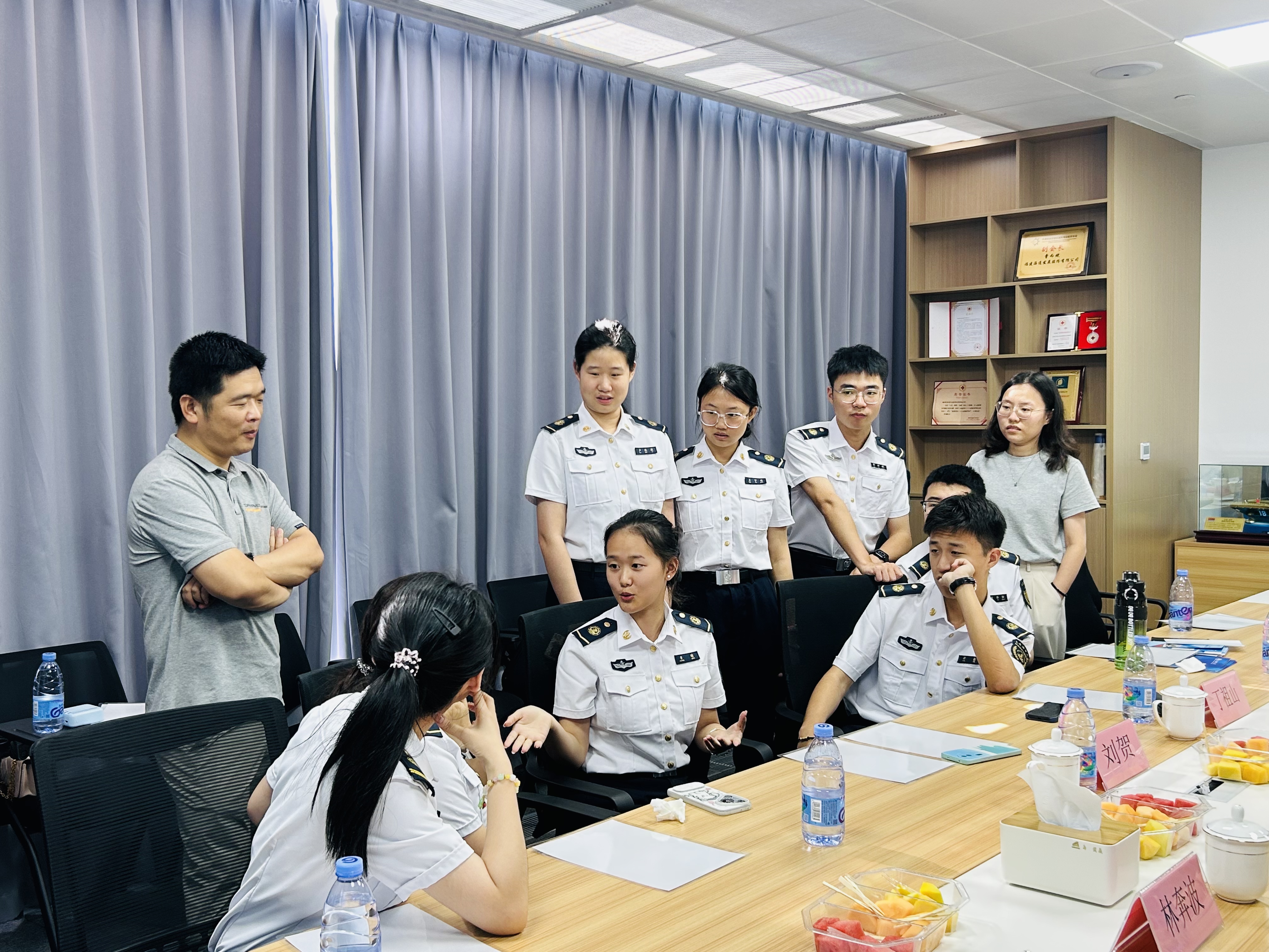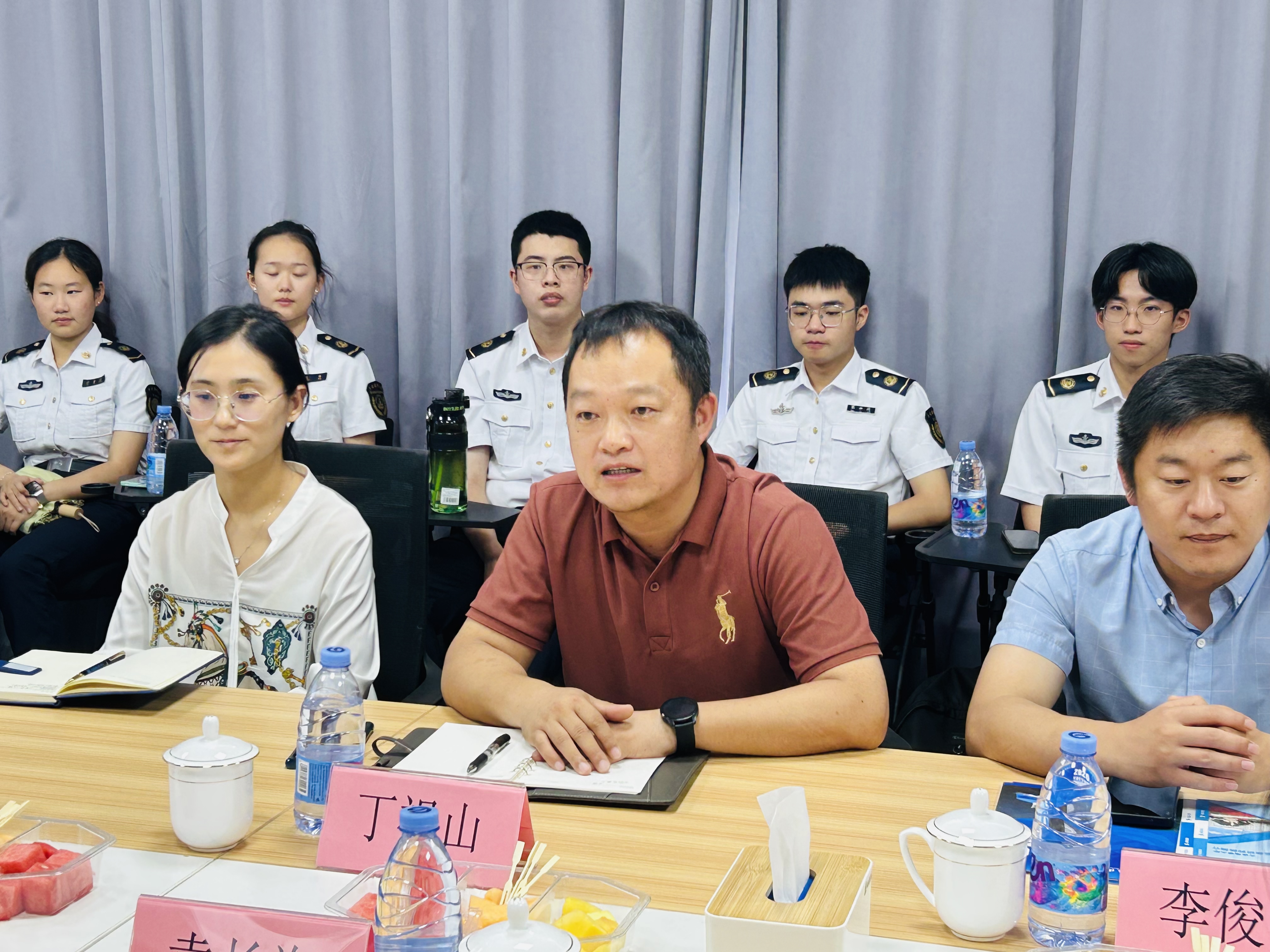 在歡迎儀式上,外貿(mào)航運(yùn)中心總經(jīng)理袁長海表示,隨著公司業(yè)務(wù)拓展,對(duì)復(fù)合型航運(yùn)人才的需求日益增長,期待與大連海事大學(xué)加強(qiáng)校企合作。丁祖山副書記介紹了法學(xué)院的基本情況和對(duì)本次活動(dòng)的深切期待,促進(jìn)產(chǎn)學(xué)研深度融合。